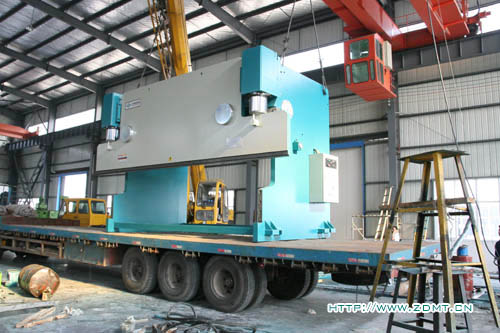 由于機(jī)器體積較大,高度超過3.5米,重量在50噸以上,所以采用了分體式運(yùn)輸,工作臺(tái)與機(jī)器主體分離開來。這種大型機(jī)床由于其體積與重量的關(guān)系,并不是很常見,需求量相對(duì)來講少點(diǎn),而對(duì)制造商的要求也相對(duì)比較高,其中無不體現(xiàn)中德產(chǎn)品在客戶心目中認(rèn)可度!