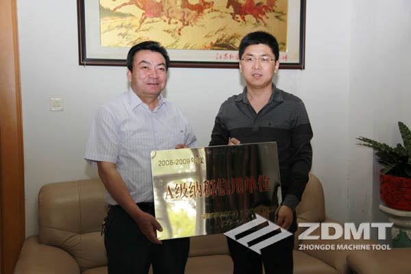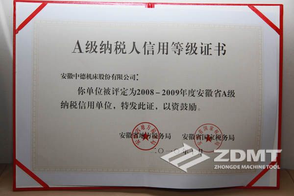 中德機(jī)床榮獲“2008-2009年度安徽省A級納稅信用單位”榮譽(yù)稱號